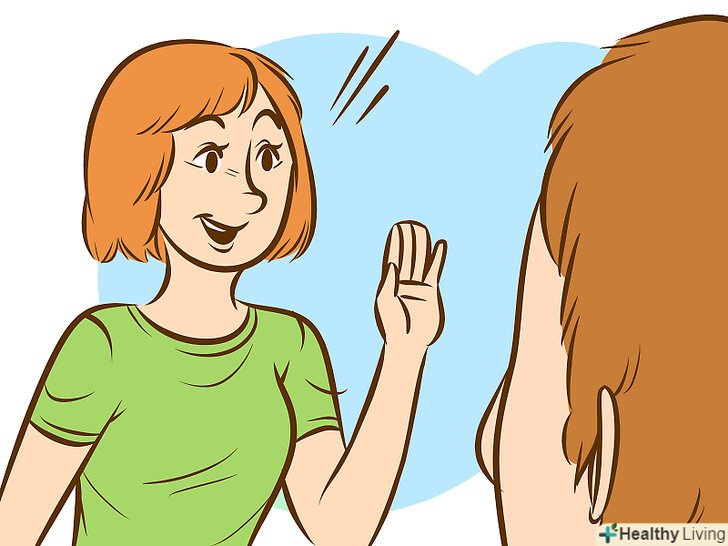 - Потренуйтеся посміхатися перед тим, як йти на вечірку. Невелика практика не тільки дасть вам уявлення про те, як виглядає ваша посмішка, але ви також зможете внести необхідні корективи. Крім того, така приємна практика підніме вам настрій. Посмішка не зійде з ваших вуст.[7]