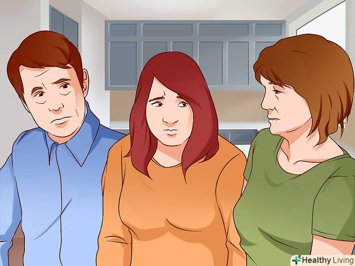 Ходіть на зустрічі групи підтримки.якщо вам легше розмовляти про проблему в групі людей, то знайдіть місцеву групу підтримки. Також можна знайти людей зі схожими проблемами онлайн. Вам буде простіше впоратися зі страхом, коли ви зрозумієте, що не тільки ви маєте справу з такою проблемою.[11]- Також можна спілкуватися з друзями і родичами. Говоріть про свої страхи і пояснюйте суть складнощів, з якими вам доводиться мати справу. Якщо друзі та рідні будуть розуміти суть проблеми, то вам стане легше.