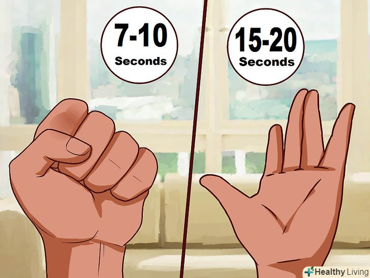 Задійте прогресивну м'язову релаксацію (ПМР).напружуйте і розслабляйте групи м'язів, щоб фізично відчувати ці дії. Для початку стисніть кулаки на 7-10 секунд, потім розслабте на 15-20 секунд і зосередьтеся на тому, як напруга залишає м'язи рук. Це ж вправу слід повторити для інших груп м'язів від рук до голови, а потім від спини і до пальців ніг.[3]- Можна використовувати ПМР кожен день протягом 20 хвилин, навіть якщо ви не відчуваєте паніки. Ця вправа допоможе вам краще контролювати власний настрій і знизити періодичність нападів паніки, а також підвищити рівень концентрації.
