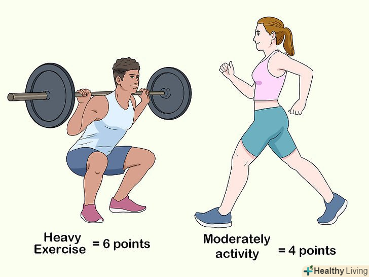 - Помірна фізична активність (наприклад, ходьба більше 2 годин на день або виконання якихось фізичних вправ): додайте 4 бали.
