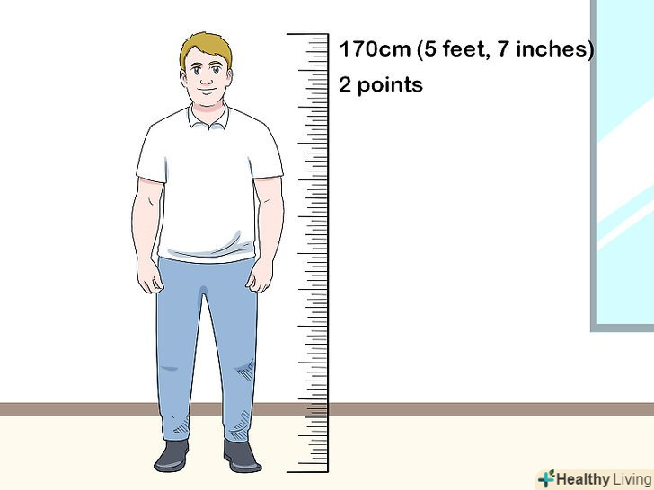 Ваші бали залежать від вашого зростання.залежно від зростання, додайте собі ще кілька балів:- Нижче 155 см: не додавайте жодного бала.