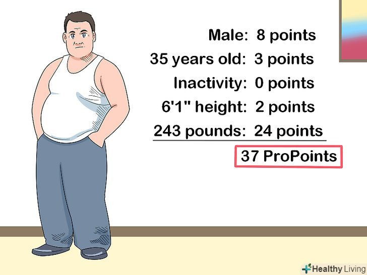 Ще один приклад: Припустимо, ви 35-річний чоловік, важите 110 кг (243 фунта), ви неактивні, ваш зріст 185 см, яка кількість балів у вас буде?- Складаємо: