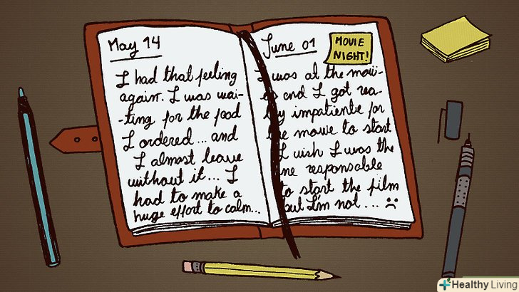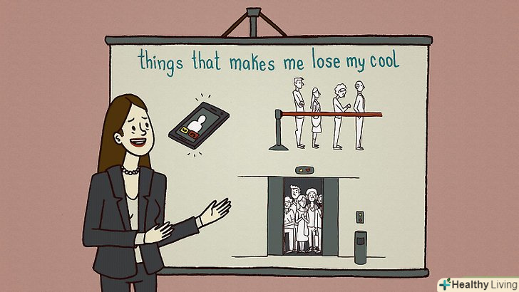 Ведіть щоденник, щоб зрозуміти, що викликає у вас злість і нетерплячість.беріть з собою маленьку записну книжку і робіть нотатки кожен раз, коли відчуваєте злість і лють. Запишіть дату і час, коли це сталося, а також опишіть, як дана ситуація змушує вас відчувати себе фізично і емоційно. Через 2 тижні прочитайте свій щоденник і подумайте, які ситуації найчастіше викликають у вас спалахи люті.[6]- Наприклад, можливо, ви зрозумієте, що часто причиною ваших переживань є розчарування в інших людях. Можна написати: "1 червня, урок математики, 14: 00. Я розлютився, тому що Діма занадто повільно вирішував завдання. У мене почали напружуватися м'язи".