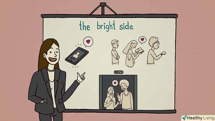 Спробуйте знайти в цій ситуації щось хороше або цікаве, якщо зможете.якщо вам не під силу змінити ситуацію, найкраще, що ви можете зробити — це змінити своє ставлення до неї. Попросіть себе знайти щось хороше в тому, що зараз відбувається, а потім зосередьтеся на цьому, а не на злості. Спочатку це буде важко, адже як і багато негативних емоцій, злість і нетерплячість змушують нас відчувати силу і міць в цей конкретний момент, але якщо ви змусите себе зосередитися на позитивних думках, це допоможе вам відчути себе набагато краще в довгостроковій перспективі.[5]- Наприклад, якщо ви застрягли в пробці, поспілкуйтеся з іншим пасажиром або (якщо у вашому автомобілі є можливість підключитися по Bluetooth) зателефонуйте другу або родичу. Спробуйте знайти нову радіостанцію або вставте інший компакт-диск і співайте!