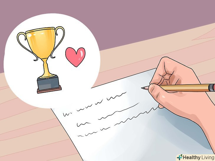 Визнайте свої сильні сторони.Подумайте про нинішній стан свого життя: про те, що ви робите, яку освіту отримуєте, якою роботою займаєтеся, про свої стосунки з іншими, про своє фізичне здоров'я. Враховуйте також свої особисті якості. Складіть список того, чим ви найбільше пишаєтеся. Постарайтеся придумати приклади, які доведуть, що ви саме така.- Наприклад: "я хороша дочка. Я телефоную своїм батькам кожен день / щотижня і спокійно розмовляю з ними, навіть коли у мене мало часу".
