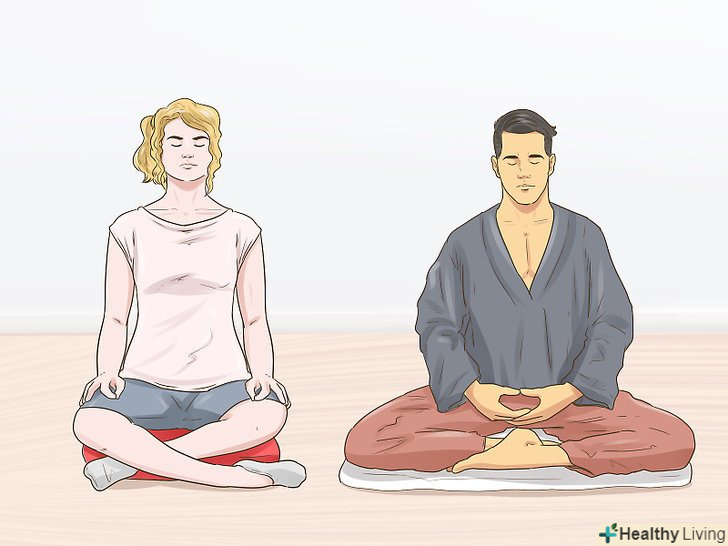 - Спробуйте сісти на подушку, килимок або каремат, якщо збираєтеся медитувати на підлозі. При необхідності можна притулитися до стіни в сидячому положенні.