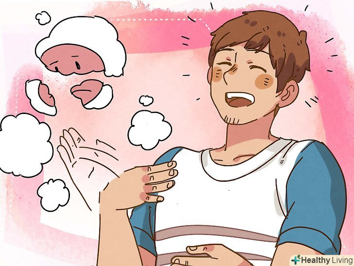 Знаходьте можливості сміятися.навмисний сміх дозволяє помічати гумор в повсякденних ситуаціях. Прості способи частіше сміятися:[13]- Дивіться веселі фільми та телесеріали;