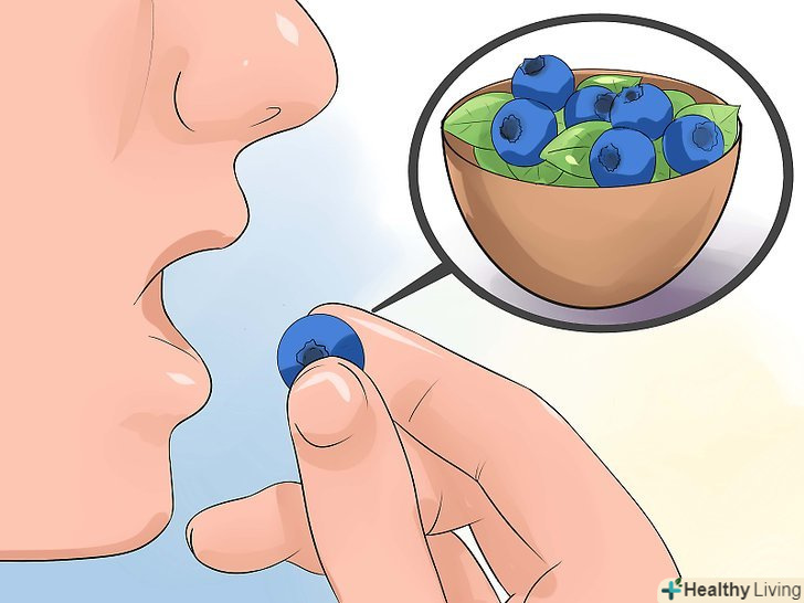 Їжте антиоксиданти.дослідження показали, що чорниця, зокрема, допомагає захистити мозок і запобігти віковим захворюванням, таким як хвороба Альцгеймера та деменція. Намагайтеся їсти 1 склянку чорниці в день. Вона може бути свіжою, замороженої або ліофілізованої.[24] гранати (або гранатовий сік без цукру) теж хороше джерело антиоксидантів.[25]