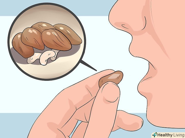Їжте горіхи та насіння.горіхи - прекрасне джерело вітаміну Е, який допомагає зменшити до мінімуму вікове зниження когнітивних здібностей. Намагайтеся їсти 30 г горіхів або негідрованого горіхового масла в день. Свіжі або смажені - неважливо, але будьте обережніше з сіллю.[28]