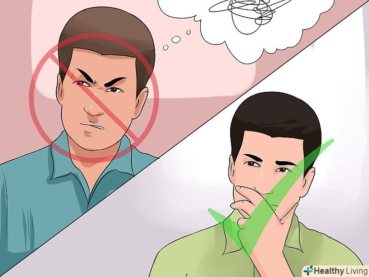 Тренуйте уважність.коли ви уважні, то живете моментом. Ваш розум не застрягне в минулому або майбутньому, а буде тут і зараз. Бути уважним до себе-значить приймати свої думки, почуття і справжню ситуацію без оціночного сприйняття.[35]- Не можна: трохи раніше сьогодні хтось втиснувся перед вами в чергу в продуктовому магазині. Ви хотіли йому щось сказати, але вирішили цього не робити. Тепер ви не можете перестати думати про те, як Ви були розгнівані в той момент, і повторюєте знову і знову в голові все, що Ви б хотіли йому сказати.