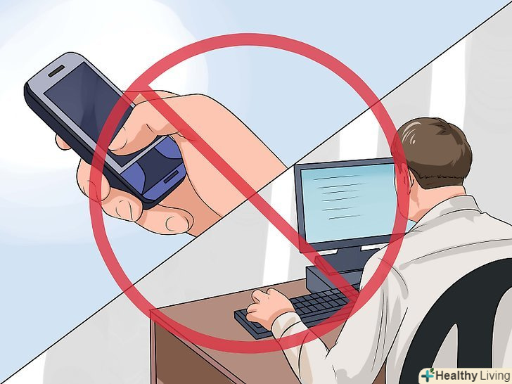 Відключайтеся від мереж.зменшуйте час використання технологій (наприклад, менше сидите за комп'ютером, телефоном або планшетом) хоча б на 30 хвилин, і ви поліпшите стан мозку і зможете краще думати.[22] якщо будете менше перебувати за комп'ютером, то зменшите ймовірність занурення в роботу поза робочим часом. Це також допомагає вам не витати думками десь в роботі, і у вас залишається більше часу на знижує стрес діяльність, тобто заняття спортом і медитацію.[23]