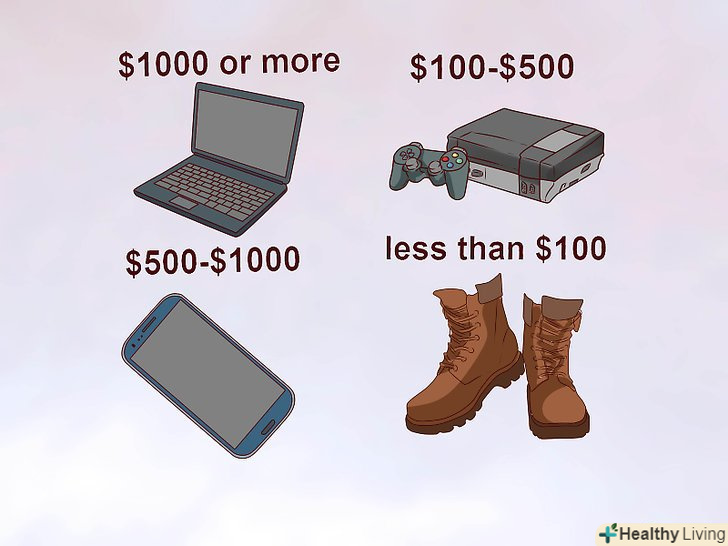 Розбийте всі пункти за категоріями.спочатку придумайте категорії, а потім розділіть всі пункти по цих категоріях.- Можна виділити в різні категорії дорогі речі, відносно дорогі речі, недорогі речі і дешеві або безкоштовні речі (все буде залежати від ваших фінансових можливостей, але дорогими слід вважати речі дорожче $1000, відносно дорогими — в межах $500-$1000, недорогими — в межах $100-$500, а дешевими — все, що коштує дешевше цього).