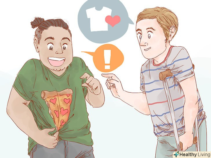 Робіть щиріКомпліменти.не потрібно нічого екстраординарного. Іноді найцікавіші бесіди починаються з фрази: "мені подобається ваша сорочка. Можна запитати, це з магазину (назва)?"Компліменти найприроднішим чином формують приємне враження про вас, оскільки ваші слова підняли людині настрій. Що ще краще, ви гарантовано будете посміхатися, оскільки компліменти, зроблені іншим людям, подарують приємні відчуття і вам теж.[10]- Якщо Ви знайомі з людиною, то називайте його по імені, коли робите комплімент. Говоріть конкретно. Замість слів: "відмінно виглядаєш", - краще сказати: "мені подобається твоя нова зачіска. Відтінок відмінно підходить до тону шкіри".