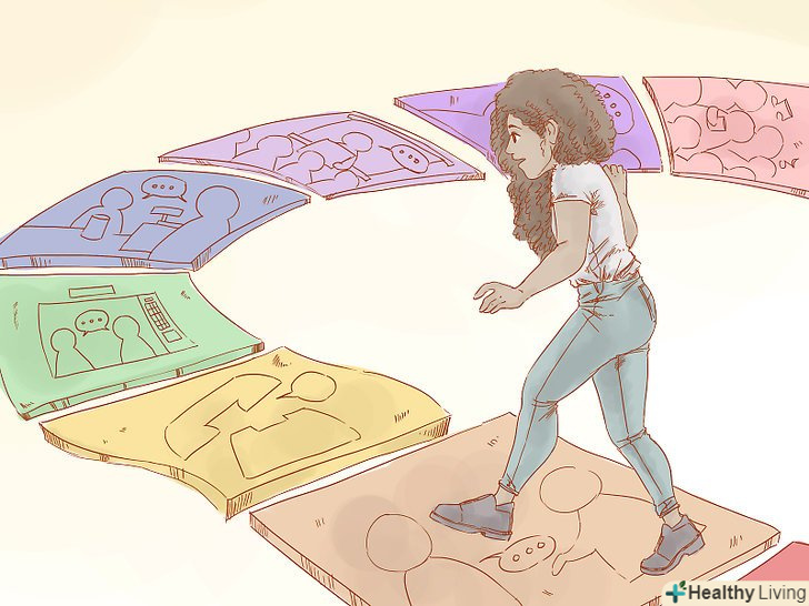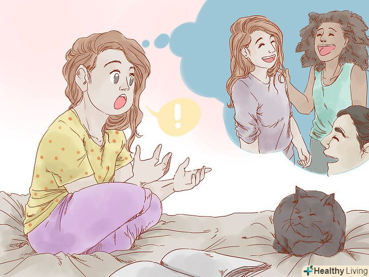 Змініть свій образ думок.людей, які відчувають незручність в соціальних ситуаціях, часто відвідують низки негативних думок. "Я виглядаю нерозумно", " зі мною ніхто не говорить "або" я буду виглядати як ідіот " — всі ці думки можуть обертатися по замкнутому колу. Як ви і самі розумієте, такі думки негативні і лише підсилюють вашу сором'язливість і відчуття незручності.- Розірвіть коло негативних думок. Віддавайте собі звіт в тому, що ви стали жертвою таких ідей. Ставте під сумнів їх логіку. Наприклад, якщо ви нервуєте у великій натовпі або на вечірці, то це зовсім не означає, що ви виглядаєте нерозумно. Навколишні люди теж цілком можуть хвилюватися.