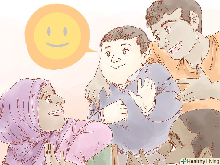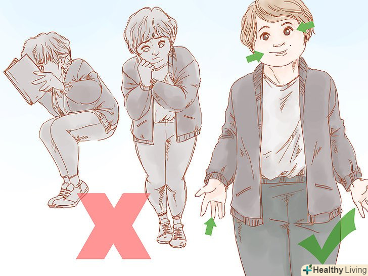 Охоче йдіть назустріч. ви б підійшли до людини з кислою міною на обличчі або з опущеною головою? Навряд. Наша мова тіла допомагає оточуючим будувати припущення ще до початку розмови. Припиніть розглядати своє взуття, злегка посміхніться і підтримуйте зоровий контакт.- Відкрита мова тіла показує, що ви відкриті до взаємодії. Нахиліться до людини, з якою Ви розмовляєте, не схрещуйте руки і ноги, а також не напружуйтеся.