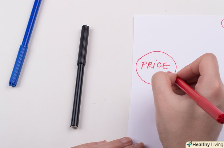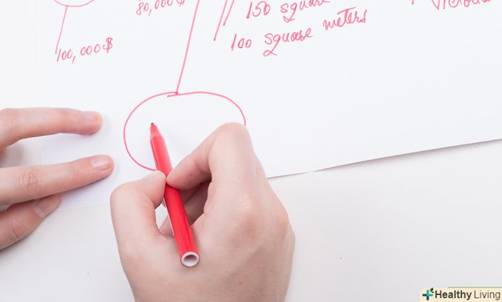 Намалюйте лінії.накресліть хоча б 2 лінії (бажано не більше 4), які відходять від першої змінної. Позначте кожну лінію як варіант або діапазон варіантів для даної змінної.- Від кола з текстом «Ціна» можна намалювати 3 стрілки з позначеннями «до 500 000 рублів», «500 000-1000 000 рублів» і «більше 1000 000 рублів».