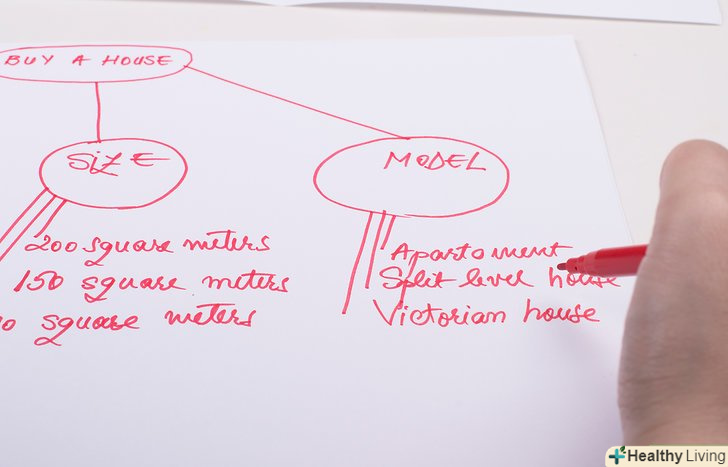 Влаштуйте мозковий штурм. Він допомагає знаходити ідеї. Запишіть всі змінні, пов'язані з рішенням, яке необхідно прийняти за допомогою дерева. Використовуйте окремий аркуш паперу або пишіть на полях основної сторінки.- Наприклад, для рішення про покупку машини можна використовувати такі змінні, як» ціна«,» модель«,» економічність«,» стиль «і»комплектація".