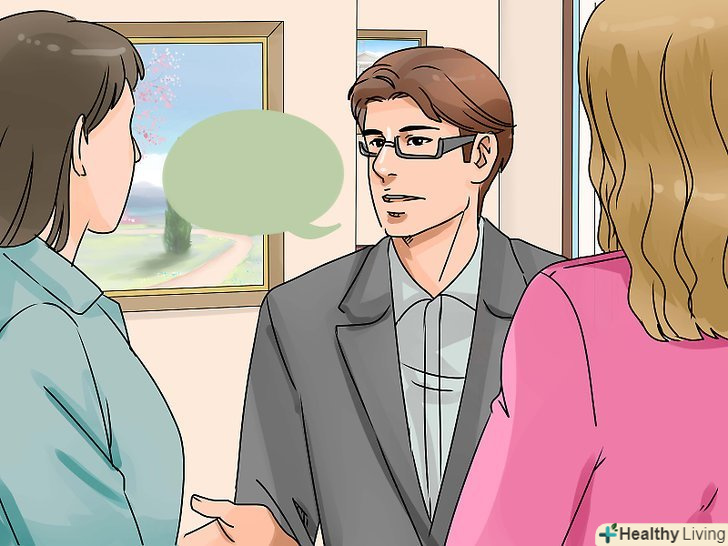 - Використовуйте мову тіла, щоб транслювати впевненість у собі. Підтримуйте зоровий контакт з іншими людьми. Стійте, розправивши плечі. Кивайте і реагуйте на слова оточуючих, щоб продемонструвати інтерес і розуміння. У розмові задавайте питання про інших. Люди тягнуться до особистостей, які щиро зацікавлені в тих, хто їх оточує.[7]