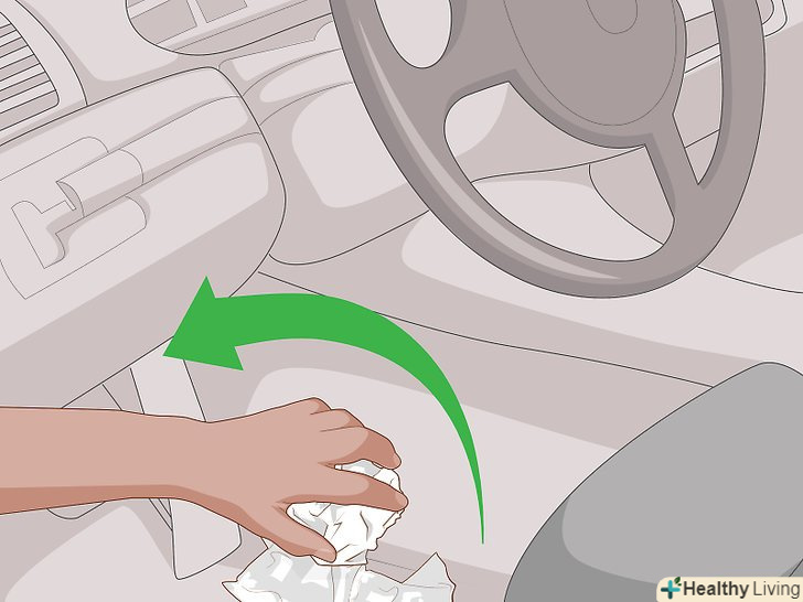 Викиньте з автомобіля все сміття.для початку очистіть салон від завалявся в ньому сміття. Можливо, ви забули в машині залишки їжі або інше сміття, що і призвело до неприємного запаху.[5] перевірте під кріслами і видаліть звідти всі залишки їжі, сміття та інші сторонні предмети. Не забудьте очистити задні кишені на сидіннях.- Якщо у вас є діти, вони могли залишити в задніх кишенях липкі цукерки або іншу їжу. Не забудьте також очистити багажник автомобіля.