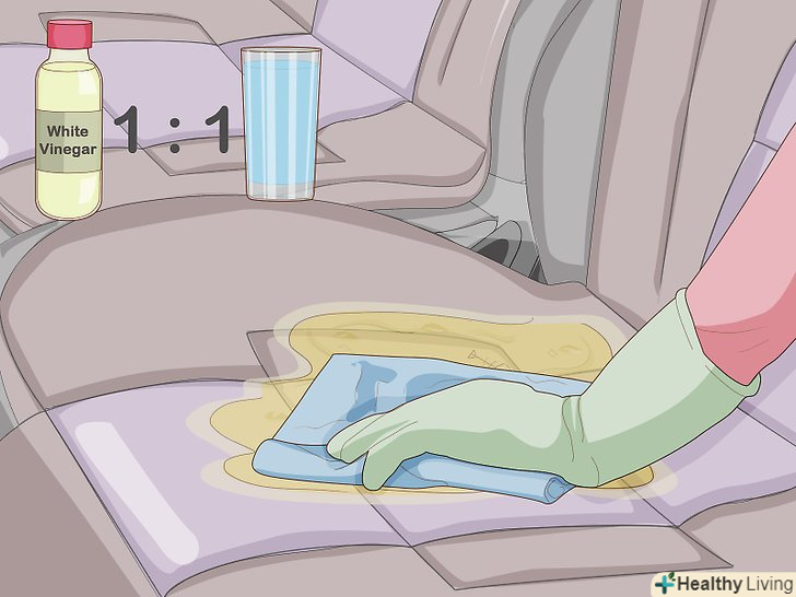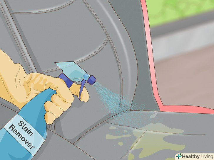 Позбавтеся від плям сечі за допомогою засобу для виведення плям.сеча має сильний запах, тому постарайтеся відразу ж видалити її з оббивки або підлоги. Придбайте в магазині автомобільних товарів плямовивідник, призначений для чищення салону. Намагайтеся промаківать плями, а не розтирати їх. Нанесіть засіб на забруднену ділянку і залиште його на час, вказаний на упаковці.- Зачекайте, поки волога пляма висохне на повітрі. Якщо використовувати пристрій для сухого сушіння, наприклад фен, сеча може вбратися в оббивку, що посилить неприємний запах.