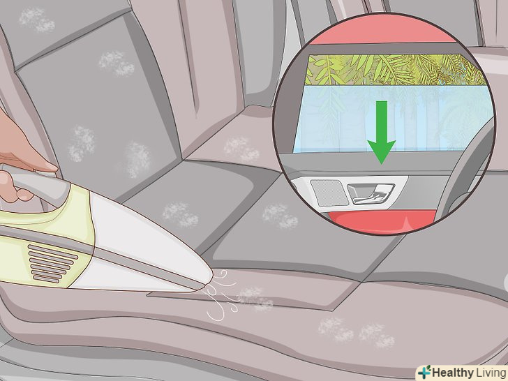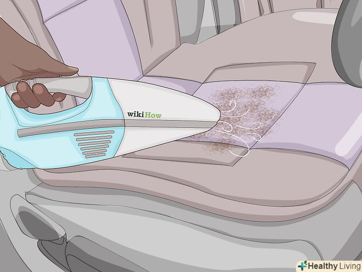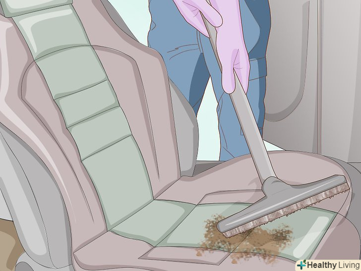 Пропилососьте салон, щоб очистити його від скопилася бруду.пропилососьте підлогу і крісла і видаліть з них бруд. Крім бруду в салоні можуть залишитися крихти і частинки сміття. За допомогою пилососа ви зможете зменшити неприємний запах. Пропилососьте всі сидіння і підлогу.[8]- Якщо ви впевнені, що неприємний запах виходить від підлоги, можна побризкати його дезодорантом для килимів. Залиште дезодорант на рекомендований час (зазвичай це близько 5-10 хвилин), після чого пропилососьте підлогу.