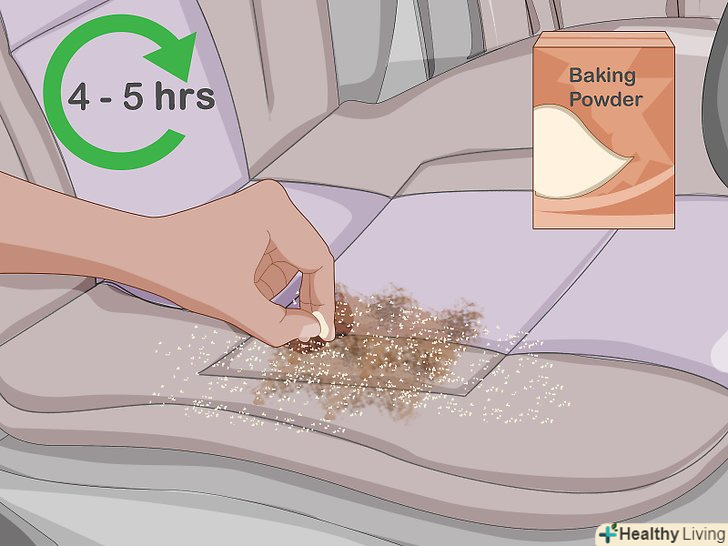 Посипте плями бруду харчовою содою, щоб видалити запах.харчова сода вбирає неприємні запахи. Придбайте в супермаркеті пачку харчової соди, зачерпніть її пальцями і посипте на погано пахне пляма. Залиште соду на 4-5 годин, потім видаліть її за допомогою звичайного пилососа.[10]- Посипайте харчовою содою лише сухі поверхні. Якщо ви нанесете соду на мокру пляму, утворюється пастоподібна маса, яку буде складно видалити.