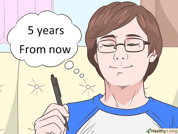 Виберіть момент у майбутньому.часові рамки можуть охоплювати 6 місяців, 1 рік або 5 років від поточного моменту. Закрийте очі і уявіть, що в наступив момент ви стали найкращою версією себе у всій красі.- Чого ви досягли? Які навички набули? Ці цілі і перемоги повинні бути позитивними і досяжними.[2]