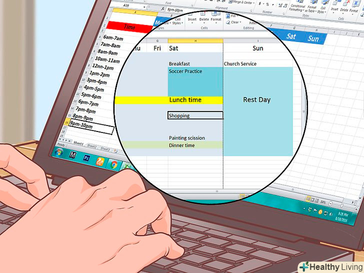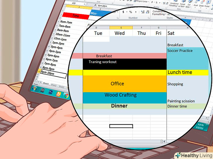 Відкрийте Microsoft Excel або іншу подібну програму. зліва створіть колонку із зазначенням часу, зверху перерахуйте в окремих колонках дні тижня.