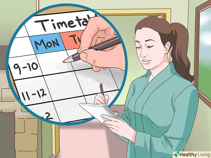 Будьте гнучкими.передбачити, скільки часу буде потрібно на ту чи іншу справу, буває дуже складно. Так що переконайтеся, що ваш розклад при необхідності можна рухати в ту чи іншу сторону. Крім того, необхідно заздалегідь резервувати деякий час на випадок непередбачених обставин.[3]- Також не варто потрапляти в пастку, залишаючи в якості резерву свій час на відпочинок. Час на відпочинок не варто розглядати як якусь розкіш. До відпочинку слід ставитися не менш серйозно, ніж до будь-якої іншої діяльності.