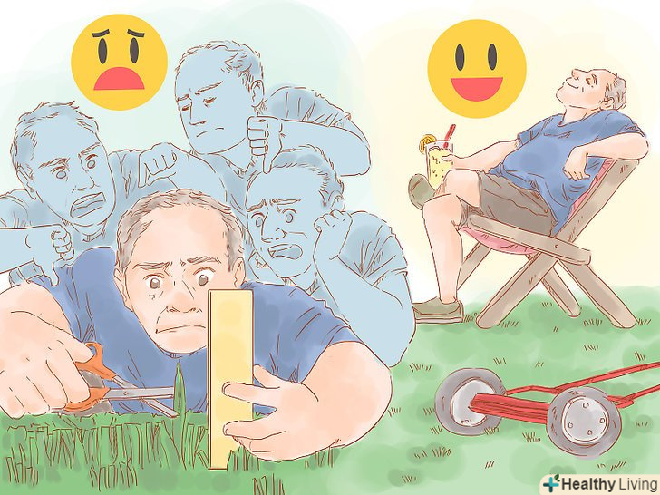 Віддаліться від своїх страхів.іноді корисно розглядати власні страхи окремо від себе. Вам буде простіше їх контролювати, якщо представити свої страхи у вигляді окремої істоти.[26]- Наприклад, уявляйте свій страх у вигляді черепашки. У моменти страху черепаха втягує голову в панцир і нічого не бачить. Очевидно, що в цьому немає користі. Уявляйте "черепаху страху" і намагайтеся протистояти їй: говорите, що ви робите все, що в ваших силах, тому не потрібно переживати про те, що від вас не залежить.