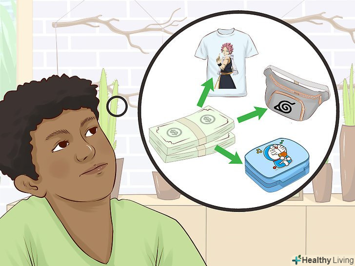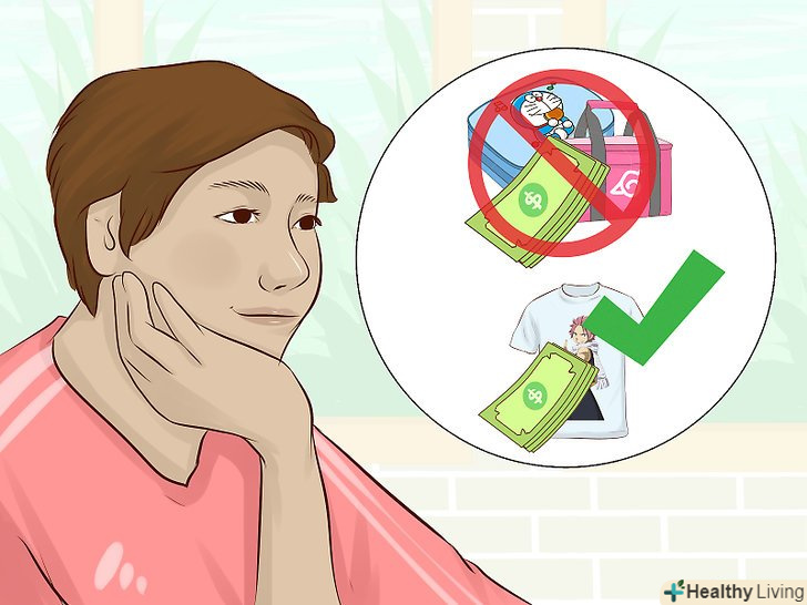 Витрачайте менше грошей на продукцію, пов'язану з аніме.ви часто купуєте значки, фігурки, сумки, нашивки та інші речі просто заради колекції? Або ви робите це, тому що вони вам дійсно подобаються? Якщо зрозумієте, що просто колекціонуєте речі, дайте відповідь на наступні питання:- Чи дійсно вони потрібні вам? Нова сумка з улюбленим героєм буде корисна, якщо ви закуповуєте речі для навчання, проте є ймовірність, що вона вам зараз не потрібна. Якщо ви обмежені в засобах, купуйте те, що вам дійсно необхідно.