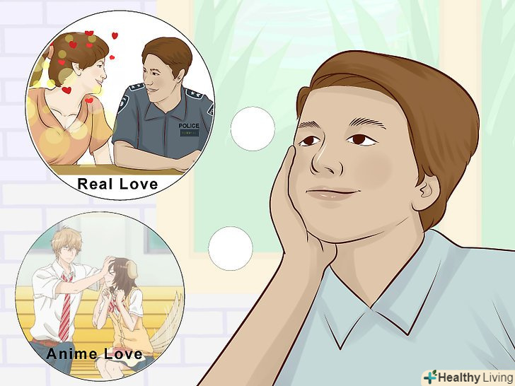 Навчіться відрізняти реальність від вигаданого світу.відчувати сильні почуття до героїв улюбленого серіалу нормально-не варто соромитися цього. Однак якщо ці почуття переростають у закоханість, вам може бути складно вибратися з цієї ситуації. Нагадуйте собі, що аніме-це вигадка, це щось, що було створено колективом письменників і художників, і що все це далеко від реальності. Придумані герої не можуть замінити людей, які оточують вас.
