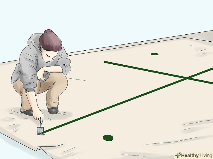 Зробіть лабіринт.якщо у вас немає можливості знайти лабіринт, ви можете зробити його самі. Насправді таке проведення часу може послужити як частина творчого процесу і допоможе розслабитися буквально, оскільки лабіринт розкривається перед вами. Щоб зробити це, знайдіть відповідне місце на піску, землі або інших грунтових матеріалах, на яких можна малювати лінії. В якості альтернативи ви можете скріпити багато білих листів і намалювати лабіринт на підлозі. Якщо ви все-таки робите лабіринт на піску або грунті, нижче кілька порад для вас.- Намалюйте хрест, розміром близько 1.8 метрів або 6 футів хрест-навхрест.Поставте крапку в кожному квадранті Хреста.