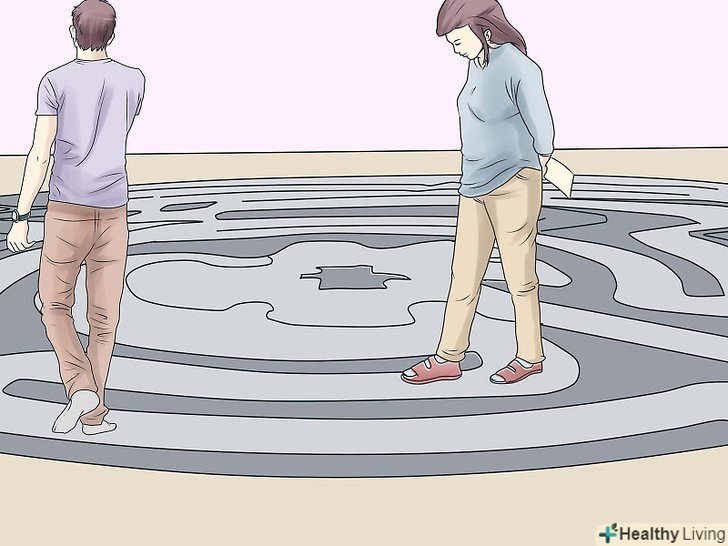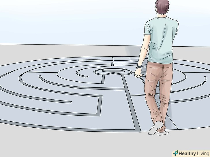 Усвідомте, що починаєте медитативну або духовну подорож по лабіринту.ви також можете вимовити коротку молитву або помазати себе, в залежності від того, якої релігії дотримуєтеся. Інші хороші способи почати процес: закрити очі і подумати або просто поклонитися.- Визначитеся, як будете ходити: босими ногами або у взутті. Босоніж ви зможете відчувати землю під ногами і зв'язок з підземними силами.