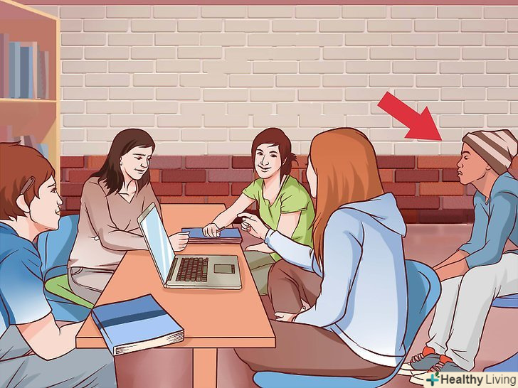 Тримайтеся осторонь, якщо люди працюють в групі або починають якусь нову справу.Сором'язливі люди зазвичай уникають соціальних заходів і ситуацій, де відбувається щось нове.[21] намагайтеся якомога рідше брати участь в загальних розвагах і уникайте нових для вас видів діяльності.- Відмовляйтеся від запрошень на зустрічі та заходи – це створить вам імідж нерішучого і сором'язливого людини.[22] майте на увазі, якщо ви будете часто відмовлятися, люди можуть порахувати вас антисоціальним, і тоді вони перестануть запрошувати вас на подібні заходи.