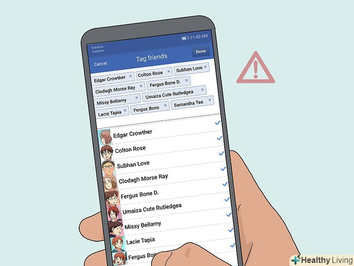 Не відзначайте людей в безглуздих постах або в інших постах без їх дозволу.відзначати людей в постах, особливо в тих, які не мають до них ніякого відношення, — це погана ідея. Якщо ви збираєтеся опублікувати фотографії, де присутні інші люди, надішліть їм повідомлення і запитайте, чи не заперечують вони, якщо ви їх відзначите. Це особливо важливо, якщо ви погано знаєте людину.[8]- Наприклад, якщо ви публікуєте в VK фотографію з третього класу, не шукайте кожної людини на зображенні і не відзначайте його. Навіть якщо ви підтримуєте зв'язок з однокласниками, вони навряд чи оцінить вашу затію.