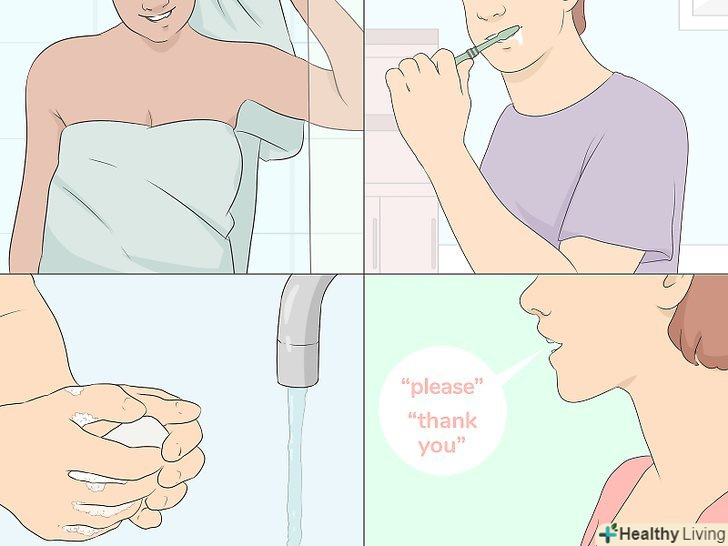 Поводьтеся ввічливо і дотримуйтесь гігієни.ввічливість відіграє велику роль в тому, щоб не викликати роздратування у оточуючих. Якщо ви будете поводитися люб'язно, то ви, за визначенням, не будете здаватися грубим. Слідкуйте за своїми манерами, кажучи» будь ласка " і "спасибі", і намагайтеся щосили бути добрим і м'яким з оточуючими. Подумайте, як би ви хотіли, щоб ставилися до вас, і ставитеся так до інших людей. [16]- Це також означає Дотримуватися світських умовності, наприклад, не пускати гази, не обговорювати функції організму на публіці і прикривати ніс і рот ліктем при чханні або кашлі.