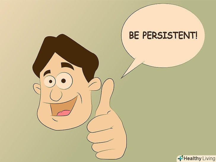 Не здавайтеся при першій же виниклої проблеми.При невдачі люди часто переконують себе, що не варто було і пробувати, в результаті чого виникають прислів'я і легенди про безглуздість будь-яких спроб щось змінити. Що б ви не запланували, на шляху завжди будуть зустрічатися перешкоди і складності, і вам доведеться з ними впоратися. Ставтеся до проблем спокійно і сприймайте їх як можливість стати сильніше і витривалішими, а також як можливість довести свою відданість мети. Якщо спочатку у вас не виходить, пробуйте знову. Якщо вас не взяли на роботу мрії або видавець не погоджується опублікувати вашу книгу, пробуйте ще, ще і ще. Багато людей вважають, що якщо не вийшло з першого разу, значить не вийде ніколи – це в корені невірне припущення, яке лише пригнічує і обмежує вас. Якщо у вас є хороша мета і стратегія по її досягненню, справа тільки в наполегливості. Не забувайте про те, що в світі багато людей і багато можливостей – занадто самовпевнено вважати, що у вас вийде зловити птицю щастя з першої ж спроби.