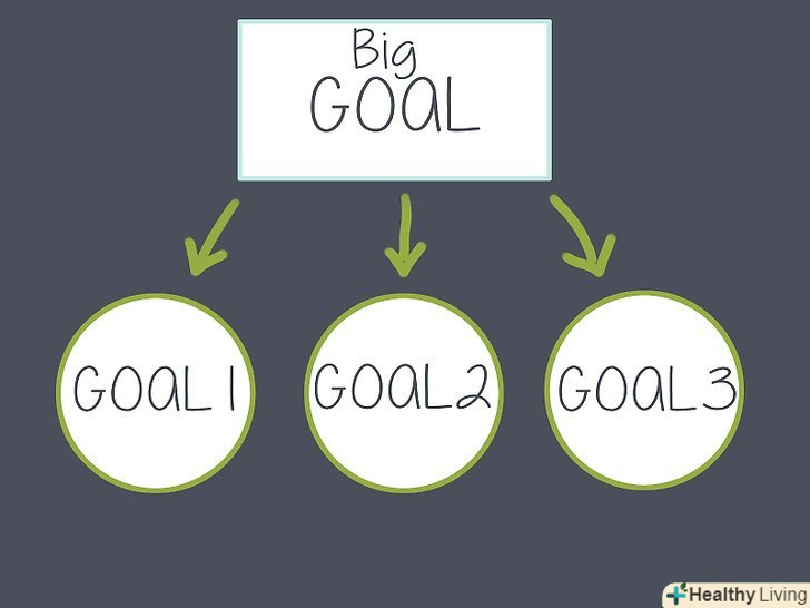 Розбийте великі цілі на більш дрібні.якщо ваші бажання досить великі, щоб істотно вплинути на ваше життя, то ви не зможете домогтися їх виконання, якщо не розіб'єте їх на більш прості частини. Точно так само, як роман розділений на розділи, вам потрібно розділити свої цілі і рухатися по кроку за раз. Деяким, можливо, знадобиться почати все з чистого аркуша і повільно рухатися до тієї точки, де кінцева мета виявиться в межах вашої досяжності.[14]- Якщо ви розіб'єте мета на більш дрібні кроки, то ви раніше відчуєте задоволення від її виконання. Це буде підтримувати вашу мотивацію рухатися вперед.
