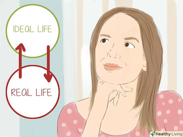 Візуалізуйте життя, яке хочете. [2] після того як ви проаналізуєте своє нинішнє життя, вам буде легко уявити собі те, що ви хотіли б бачити по-іншому. Подумайте про те життя, яке є у вас зараз, і використовуйте її в якості плацдарму для уяви свого ідеального життя. Що було б по-іншому? Розбийте свою життєву мрію на аспекти-робота, любовні відносини, соціальне життя, і так далі. Напишіть хоча б по одному реченню про кожен аспект бажаної життя. Можна навіть намітити схему у вигляді мережі думок, це теж буде корисно.- Різниця між вашим реальним і ідеальним життям повинна стати основою для ваших цілей.