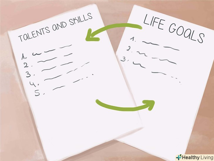 - Було б корисно записати відповідні навички поруч з цілями, які ви перерахували. Деякі зв'язки будуть очевидними, але варто також подумати про побічно корисних уміннях. Наприклад, музиканту необхідно добре розуміння музики, щоб досягти успіху в своїй творчості, але йому також, швидше за все, знадобиться вміння працювати в команді і гостре ділове чуття, щоб просунутися в сучасній індустрії.