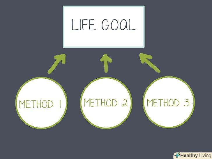 Намітьте методи досягнення своїх цілей.цілі, залишені самі по собі, - нематеріальні. Для того щоб втілити свої мрії в реальність, вам потрібна чітка і, перш за все, реалістична стратегія їх досягнення. Кожен звик мріяти по-крупному, але по-справжньому цілеспрямована людина, розмірковуючи про свої бажання, матиме на увазі практичні заходи. На стадії візуалізації досить буде просто написати кілька пропозицій про те, як ви збираєтеся домогтися кожної зі своїх цілей.[4]- Наприклад, якщо в якості однієї зі своїх цілей ви написали "я хотів би зніматися в кіно", методом досягнення цієї мети може бути наступне: "Я почну розсилати своє резюме та інформацію про таланти по агентствам, буду брати невеликі ролі, щоб про мене все дізналися".
