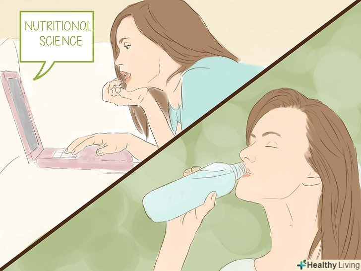 Дотримуйтеся збалансованої дієти.якщо ви приділяєте сну достатню кількість часу, але все одно відчуваєте себе втомленим, з великою ймовірність можна сказати, що на це впливає ваш раціон.[7] уважно проаналізуйте те, що ви їсте. Чи віддаєте Ви своєму організму належну повагу? Залежно від вашої поточної дієти, можливо, є певні продукти, без яких ви могли б обійтися. Найкраще дотримуватися раціону, заснованого на споживанні цілісних продуктів, але варто приділити деякий час тому, щоб розробити план харчування, який підійде саме вам. Прагніть до збалансованої дієти, яка буде знаходити розумний баланс між тим, що ви хочете їсти, і відповідальним, здоровим харчуванням.[8]- Дізнайтеся більше про дієтологічні науки. Проведіть власне дослідження. Не приймайте як належне всякі модні дієти. Краще проведіть власне дослідження і дізнайтеся, що найбільше підійде вам. Книга коліна Кемпбелла "Китайське дослідження" стане для вас чудовою початковою сходинкою, якщо ви цікавитеся вивченням зв'язку між здоров'ям і поширеними продуктами харчування.