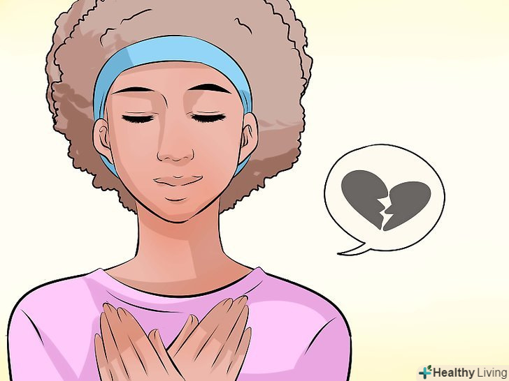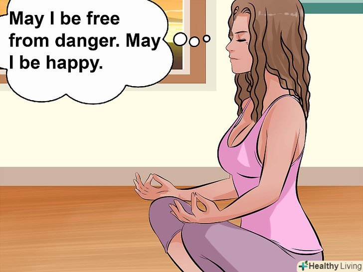 Задійте медитацію люблячої доброти.доведено, що ця медитативна практика підсилює позитивні емоції і дозволяє відкрито спілкуватися.[8] можна повторювати мантру про себе або вголос, бажати миру і добра собі і іншим.- Наприклад, скажіть:Так обійде мене небезпека стороною. Нехай я буду щаслива. Та обійдуть мене стороною страждання. Нехай зцілиться моя свідомість. Так буду я в ладах зі своїм тілом жити в мирі і здоров'ї.