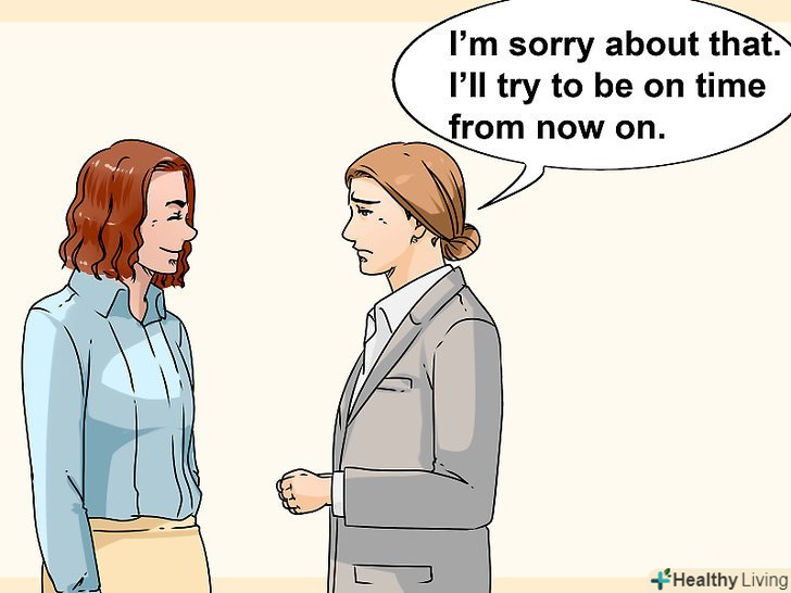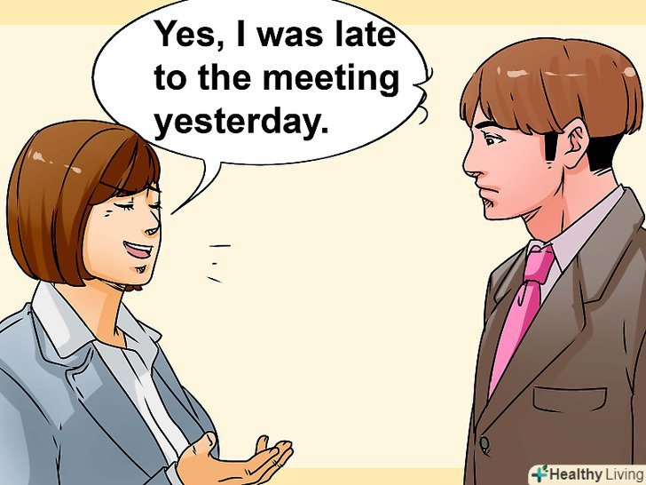 Визнайте помилку. використовуйте «негативні твердження», якщо людина вірно помітив недолік вашої поведінки і ви хочете показати, що згодні з конкретним зауваженням, але не дозволите критиці визначати ваші особисті якості.[12] визнаючи свою помилку, ви не розписуєтеся у власній безпорадності, а показуєте, що хочете змінити свою поведінку.- Наприклад, якщо ви дійсно часто запізнюєтеся на зустрічі, можна сказати «так, я часто запізнювалася останнім часом. Я шкодую і постараюся, щоб такого більше не повторилося»'.