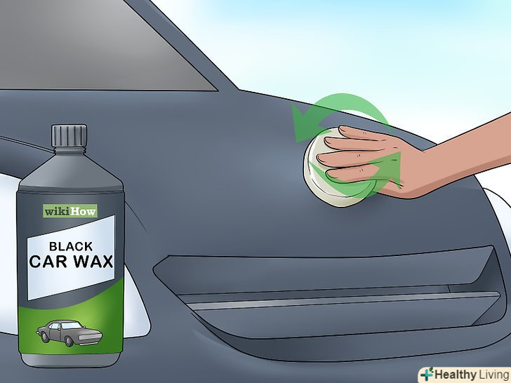 Нанесіть чорний віск вручну.використовуйте марлю або махрову тканину, щоб нанести віск на кузов. Здійснюйте перекривають один одного кругові рухи, не надаючи сильного тиску. Помірний тиск буде запорукою того, що віск проникне в пори фарби і мікроподряпини.