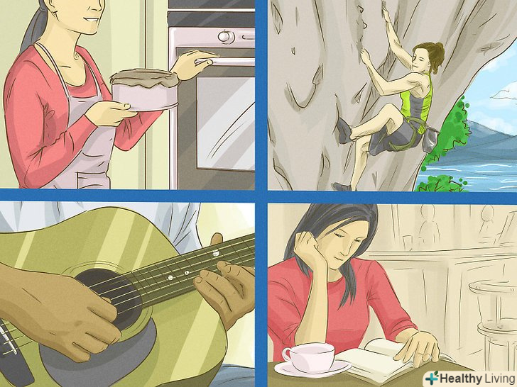 Ставте обдумані цілі.якою б не була ваша мета, постійно працюйте над нею і вірте в поставлене перед собою завдання. Коли ви досягнете своєї першої мети, ви будете натхненні і з радістю приступите до решти, а також почнете ставити нові. З кожною досягнутою метою, нехай невеликий, ваша впевненість і самооцінка будуть рости, наповнюючи ваше життя позитивом.[31]- Спрямоване досягнення власних цілей, нехай і невеликими кроками, змусить вас почувати себе щасливішими.[32]