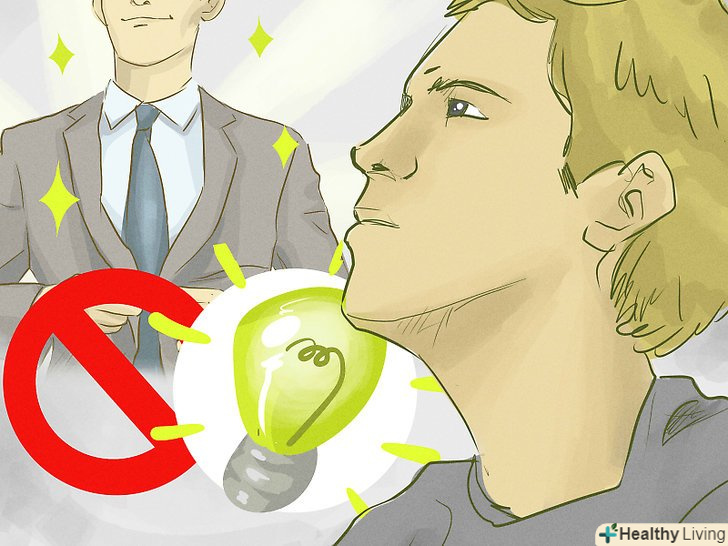 Замінюйте негативні думки позитивними.коли ви відчуєте, що можете виявляти і боротися з негативними думками, значить, ви готові робити вибір з приводу заміни поганих думок на хороші.[9] це не означає, що все у Вашому житті стане позитивним, адже для людини цілком нормально відчувати різні емоції. Однак намагайтеся замінювати щоденні непотрібні моделі мислення думками, які насправді допомагають вам процвітати.- Наприклад, якщо вас відвідала думка» я точно завалю контрольну", зупиніть себе. Ви вже визначили цю думку як негативну і проаналізували її точність. Тепер спробуйте замінити її позитивною думкою. Однак позитивне мислення не повинно бути надоптимістично, на кшталт:»навіть без підготовки Я запросто наберу 100 балів на контрольній". Нехай це буде щось просте, наприклад,»я витрачу час на підготовку, щоб здати тест на максимум своїх можливостей".