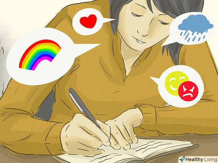Заведіть щоденник, щоб відображати там свої думки.записуючи щоденні думки, ви зможете простежити за тенденцією формування свого позитивного і негативного мислення. Записуйте свої думки і почуття і спробуйте визначити, які моменти викликають у вас позитивні і негативні думки. Витратьте всього 20 хвилин в день, щоб простежити за розвитком своїх думок-це допоможе вам з'ясувати, що викликає в вас негативні асоціації і як перетворити їх в позитивні- Можете вести щоденник в будь-якій формі. Замість того щоб списувати листки щоденника, можна просто записати 5 переважаючих негативних і позитивних думок за день.