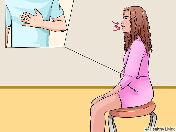Зробіть паузу і дихайте глибоко.завдяки самовладанню людина здатна зберігати спокій в складних або дратівливих ситуаціях. Замість мимовільної негативної реакції, що включає крики і хлопки дверима, навчитеся зберігати самовладання. Віддихайтеся і зберіться з думками або елегантно віддаліться (вибачитеся і підіть у вбиральню).[17]- Якщо ви одні, то спробуйте заспокоїтися за допомогою дихальної гімнастики. Зробіть глибокий вдих через ніс і повільно видихніть через рот. Зосередьтеся на диханні і своїх відчуттях. Можете знову дихати як зазвичай, коли відчуєте спокій і розслаблення.